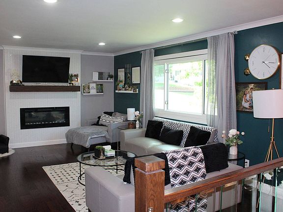This won't be on the market long with this beautiful completely remodeled home! The entry has an elegant clear panel railing, leading to the open living room and kitchen. The kitchen has new cabinets, quartz countertops, beautiful island with seating, new lighting, new window and new frosted patio doors to the deck. Main flooring is engineered wood. The living room also has new windows and a cozy electric fireplace. There are 3 bedrooms and a new tiled bath on the main floor as well. The basement is finished beautifully too with a bedroom, family room with electric fireplace, tiled bathroom, and laundry with pet shower stall. Basement Flooring is Luxury Vinyl Tile. Heat and Air are new as well. All the work has been completed within the last 5 years. The lot is over 3/4 acre and includes a fenced back yard and vacant corner lot.