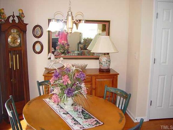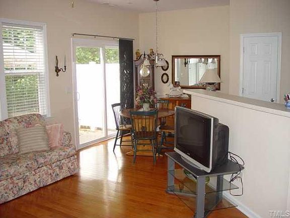 FIRST FLOOR OWNER'S SUITE! End unit in Historic Downtown Wake Forest. Home has beautiful upgrades including: Hardwoods in Living/Dining/Kitchen/Hall/Powder Room and Entry, 42" Wood Cabinets. ALL appliances convey! Shows nearly new. 2 inch window blinds. 2nd level rarely used. Extremely private lot. Wake Forest greenway in back makes for a very quiet setting.