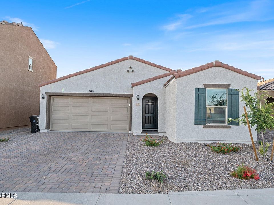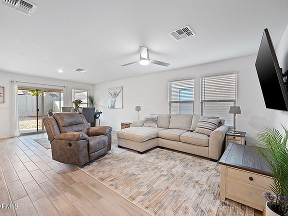 Welcome to your dream home! This stunning property boasts exquisite features. Step inside and be captivated by the elegant design and meticulous attention to detail. White shaker cabinets adorn every room, complementing the white Silestone countertops with black accented hardware and stainless steel appliances in the kitchen. The wood plank tile floors create a warm and inviting ambiance, with Hampton Bay ceiling fans throughout. The backyard is finished with a charming small flower garden. Unwind in the master bath, featuring a custom barn door and a master shower glass slider. Enjoy programmable ecobee thermostat with 2 room sensors, ensuring optimal comfort. property features a Blink doorbell, floodlight, front door keypad and reflective energy efficient windows The location is perfect nestled in an idyllic natural setting near the Estrella and White Tank mountain ranges, with close proximity to shopping, dining, and entertainment at Palm Valley and Gateway Pavilions. It's just minutes away from the vibrant Westgate Entertainment District, downtown Phoenix, and professional sports venues. Commuting is a breeze with easy access to I-10, Loop 101, Loop 202, and Loop 303. The home is also close to many city parks, including the award-winning Festival Fields Park. Golf enthusiasts will appreciate the short drive to prestigious courses such as The Wigwam Resort, Palm Valley Golf Club, and Coldwater Golf Club. Don't miss the opportunity to call this exceptional property your own. Schedule a showing today!