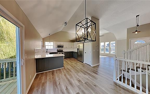 Don't miss this awesome split level ready for your move in! Beautiful natural light floods the living room with vaulted ceiling, fireplace and built in bookcases. The fabulously large kitchen and attached dining area has been updated with new quartz countertops, stainless steel appliances (microwave, dishwasher, range) and painted kitchen cabinets and hardware. New LVP covers the main level. Just a few short steps up from the shiplap wall, you will find the primary suite and 2 nicely sized bedrooms freshly painted with new carpet. Refresh yourself at the end of the day in the newly updated bathrooms. Bring your ideas for the unfinished lower level. Bring your lawn furniture and enjoy the newly built deck and large fenced yard. A new garage door and opener and newer roof top it all off! Nominal HOA fees cover common areas of Willow Springs subdivision. Your new home is conveniently located 10 minutes south of Olathe near Stone Creek Park, and Veterans Memorial Park. You really don't want to miss this one!