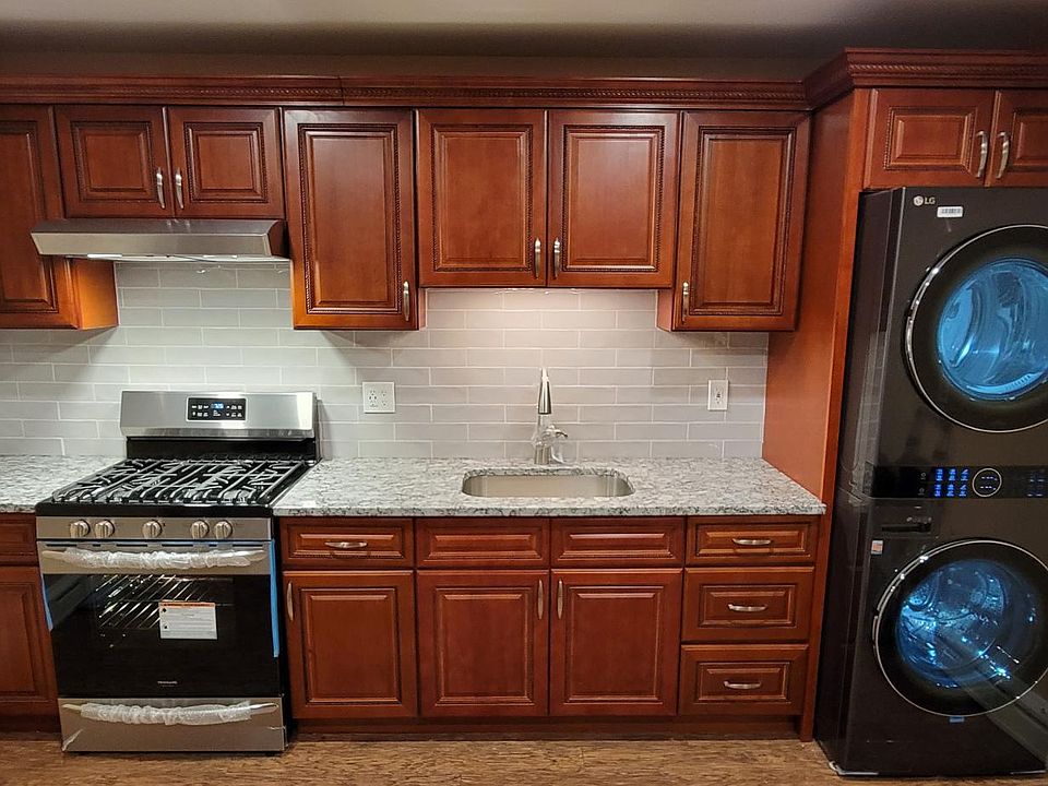 2 Bedroom apartment in second floor just redone. Freshly done hardwood floors. New kitchen with all soft close doors and draws. Granite counter tops with new sink and 3 function extendable faucet. New 5 burner stove, new exhaust hood, fridge with ice maker, new microwave and new LG tower washer and dryer with WiFi control. Pantry closet in kitchen with light. Wifi control from anywhere thermostat for heat. "Renter responsible for wifi service for functioning" All new bathroom fixtures including new 48 inch vanity with soft close doors and 4 draws. Matching oil rub bronze faucet and shower fixtures. Adjustable mirror over vanity sink. Medicine cabinet with antifog mirrors and soft close doors. Bathroom exhaust with light. Towel ring hooks. All light fixtures are Led in entire apartment. New ceiling fan with Led light. Ac in wall with remote in living room. New Led fixtures in hall and Kitchen. Coat and linen closets. New 10 year smoking and carbon monoxide detector combo. No smoking in unit. Great storage in bedrooms. Located in very quite future dead-end street with plenty of on street parking. Available immediately. 1 year lease. No pets. Tenant pays Gas and electric. Water, sewer and trash included. Looking for good credit applicants. Perfect for small family of 3 or single professional.