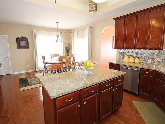 Gorgeous atrium ranch in prestigious Stonemoor subdivision. Brick and stone front elevation. In-ground sprinkler system. Professional landscaping. Large level yard. Custom outdoor lighting. Covered deck with fresh stain and underneath storage shed. Twelve foot ceilings. Hardwood floors. Wrought iron spindled staircase. Custom blinds throughout. Vaulted great room. Gourmet kitchen with 42" custom cabinetry, granite counter tops, JennAir stainless steel appliances, gas cook top, double ovens, center island, and planning desk. Spacious breakfast room. Separate formal dining room. Luxury master suite with french doors, tray ceiling, large walk in closet, and soaking tub. Finished lower level with wet bar and full bath. Cozy gas fireplace. Water softener. Subdivision pool and playground. Quick access to Wentzville Parkway amenities.