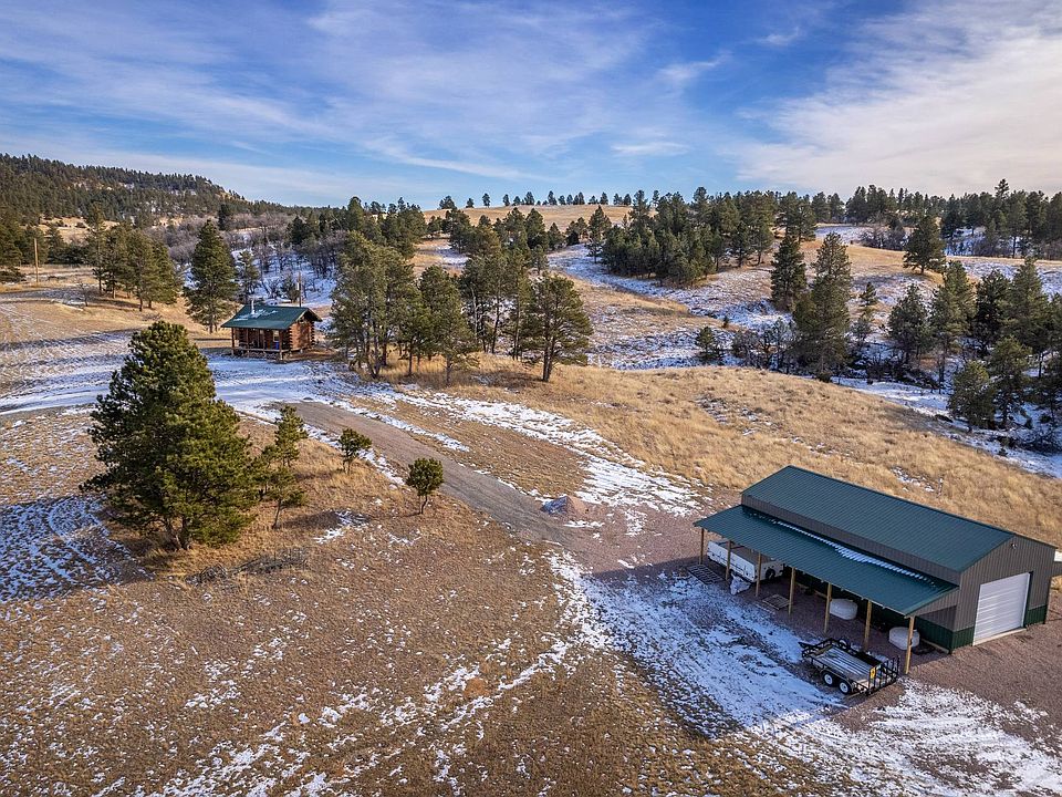 Northeastern Wyoming hunting cabin on 156 acres offering excellent wildlife habitat, beautiful scenery, incredible vistas and remote solitude offered by wide open spaces. The area is prime habitat for Merriam Turkey, Whitetail Deer, Mule Deer. Hunting blinds are in place and the tillable meadow lands offer a great place for food plots. Several ATV trails loop through the land. The log cabin and shop are situated to take in the views across the countryside, yet be easily accessible. The newer one-room cabin has a loft sleeping area and the wood stove keeps it cozy. The 24' x 48' shop is just down the hill from the cabin. The shop has a cement floor and built-in shelves on two sides with plenty of room for all of your hunting and recreational gear. Located in the foothills northwest of Hulett about a 20-minute drive. No Covenants. A wonderful setting for a hunting base camp, vacation retreat or to establish a year-round home.