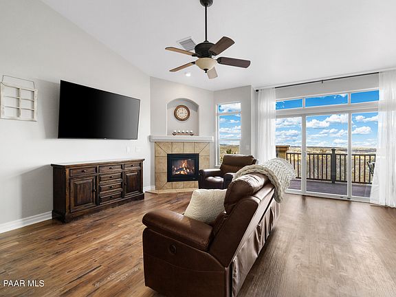 With some of the most spectacular views in all of Yavapai County, this 2,634 square-foot luxury home features 4 bedrooms, 3 bathrooms, 2 fireplaces, 2 living rooms, a den/study, upstairs and downstairs laundry room options, abundant storage, an upstairs deck, a downstairs patio, 2-car garage, many additional parking spaces, mature shade trees, and so much more! Take in the incredible views of Granite Mountain, Bill Williams Mountain, the San Francisco Peaks, Willow Lake, and the Granite Dells. Situated on a quiet cul-de-sac with oversized bedrooms, granite countertops, upgraded carpet, luxury plank flooring, 12-foot vaulted ceiling, and stainless steel appliances, enjoy single-level living in the expansive feel of this gorgeous, luxurious, and spacious home. Book your showing today!
