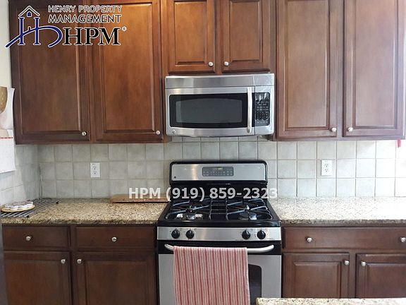 5 Bedrooms, 3 Baths + Bonus Room. Eat-in kitchen includes microwave, dishwasher, stove, refrigerator, disposal. Walk-in pantry. Granite counters. Fireplace. First floor bedroom. Master suite has stall shower + garden tub, walk-in. Deck. 2-car garage. Approximately 2,750 square feet. This property is owner managed. Henry Property Management will not be managing this property after occupancy. 2018-2019 Schools: David Drive Elementary Davis Drive Middle Green Hope High School