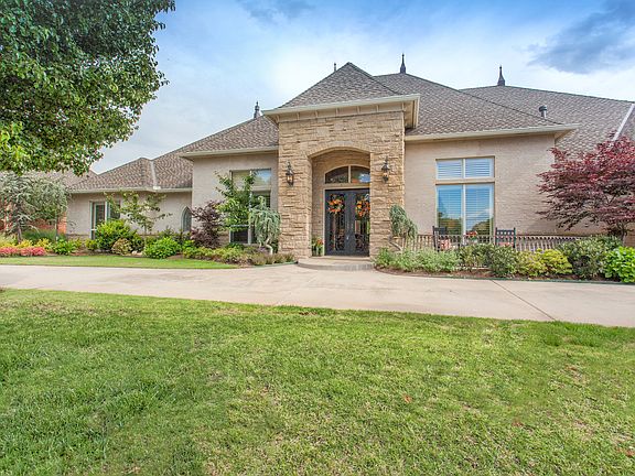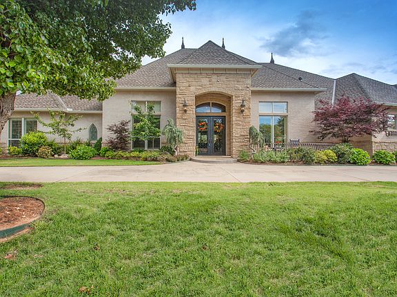 Gorgeous One-Level Home on Oak Trees #10 Fairway. Incredible backyard w/outdoor kitchen, fire place & swimming pool. Outdoor kitchen includes gas grill, wet bar & refrigerator. Double entry steel doors greet you w/fabulous, study, open living w/12 foot ceilings view of swimming pool, stone fireplace & wood floors. Study includes 12' ceilings, built-ins & fireplace. Kitchen over looks living, breakfast bar & dining. Floor to ceiling windows & french doors lets the beauty of the outdoors enter. Kitchen includes SS appliances, ice maker, trash compacter & 6-burner gas cook-top & sub-zero. Master Bedroom has 12' ceilings, see through fireplace into the master bath. Gorgeous built-ins throughout this area as well as whirlpool bath separate bath & huge closet. All other over sized bedrooms includes crown molding, ceiling fans, large walk-in closets and private baths. Plantation shutters & extensive crown molding throughout. Also includes 6-8 storm shelter in garage.