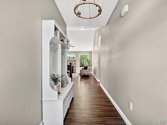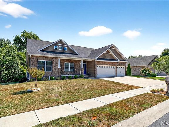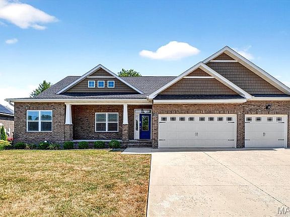 YOU WILL LOVE THIS BEAUTIFUL RANCH Built in 2021. This beautiful ranch offers a spacious open floor plan w/ a split bedroom concept offering the master on one side of the home & two other bedrooms on the other side. The main level has a gourmet kitchen featuring a butterfly island with granite countertops, showcase white cabinetry, and stainless appliances! Home offers a spacious open floor plan w/ a split bedroom concept offering the master on one side of the home & two other bedrooms on the other side. Grand master suite with soaking tub and built-in closets. Lower level bonus entertaining room, full bath,4th bedroom, abundance of storage and walkout to wooded lot! Perfect lot for a pool!!Other upgrades include an irrigation system, custom shades, extended patio and deck, three car garage & more.Don't miss this opportunity close to SAFB, major highways, hospitals, and a short commute to St. Louis! Call your favorite agent today to see this one of a kind home!