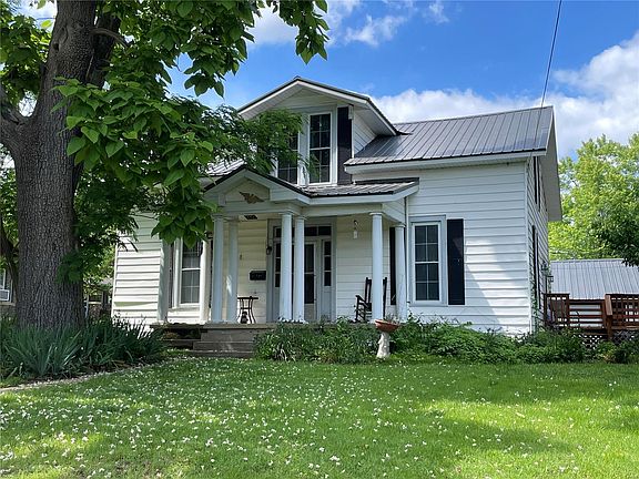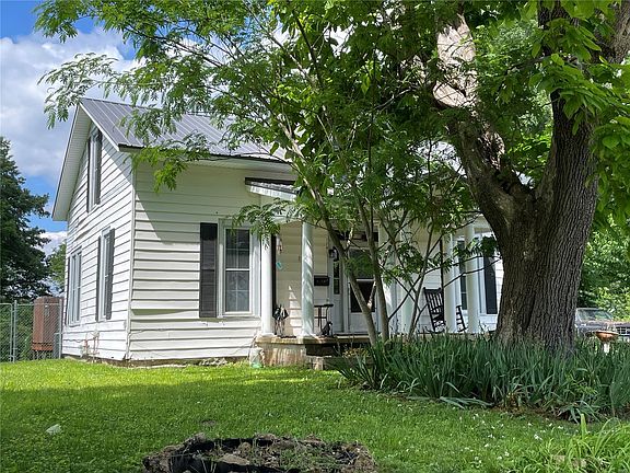 Covered front porch, shaded yard, deck, detached garage/shed, pool, patio and chain link fenced back yard. House has living room, kitchen, separate dining room, foyer, laundry room and 2-bedrooms on the main floor. Upstairs is a landing, turned library/sitting area and 2-bedrooms with walk in closets. House has newer metal roof and central h/a, all appliances stay. Great house with lots of space and dead-end street location.