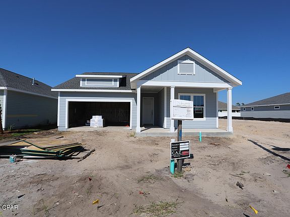 **RED BOW SALES EVENT--Discover incredible savings on move-in ready homes just in time for the holidays! Don't wait--these offers won't last long!**No need to look any further - your dream home has been found! You will fall in love with this stunning 3-bedroom, 2-bathroom Trigger plan with coastal elevation style in the coveted Breakfast Point East neighborhood in Panama City Beach. Step into your backyard oasis, where lush green space awaits. Whether it's playing fetch with your dog, running around with the kids, or hosting a backyard barbeque with friends, there's ample room for all your outdoor activities. The front porch offers the perfect spot for savoring your morning coffee or reading your favorite book. Inside, the open floor plan creates a warm and welcoming atmosphere, perfect for hosting gatherings. Interior features include luxury vinyl plank flooring throughout with tile flooring in bathrooms, tray ceilings in the living room and primary suite, low profile LED lighting, and 8' 2-panel craftsman interior doors. The kitchen is a chef's delight, fully equipped with GE stainless steel appliances, quartz countertops throughout, abundant storage, under cabinet lighting, and a large island. Relax in your owner's suite, which overlooks the serene backyard. The primary bedroom features an en-suite bathroom with a walk-in shower as well as a spacious walk-in closet. The two additional bedrooms at the front of the home share a modern, full bathroom. Located in the heart of the Breakfast Point East community, you're in close proximity to Breakfast Point Academy and Arnold High School, shopping, dining, and entertainment options. Enjoy the best of coastal living with the beach just 3 miles away and less than 30 minutes from the airport, making travel a breeze. This home truly has it all. Welcome to your new Haven!