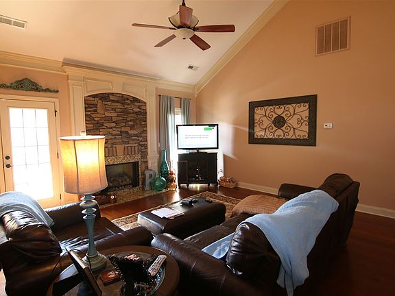 Sprawling one story brick/stone home with 4bedrooms and a large bonus room. This home offers lots beautiful hardwood floors, open Great Room with soaring ceilings, Rocked fireplace, with lots of trim/arches. Gorgeous dark wood kitchen cabinets with granite counter tops, Stainless steel appliances, breakfast nook to enjoy your morning coffee. Formal dining area is open to the kitchen and the Great room, lots of natural light. Master suite with trey ceiling, hardwood floors, rope lighting, double vanities, separate shower, garden tub. Outside oasis with a covered porch, outdoor built-in grill, Pergola and stone gas logs fireplace. Back Yard is fully fenced in for privacy!