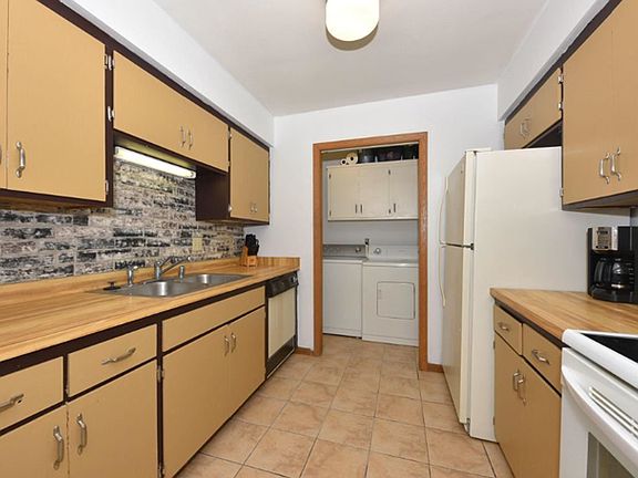 Welcome home! $100 off first month's rent to the signed renter** Available 12/1/25 - Large 2 bedroom 1 bath upper unit, condo in a park-like setting with attached tuck-under shared garage. Close to Albecker Natural Area and the Hepburn Woods Park Reserve, as well as many food and grocery options! Condo includes stove, refrigerator, dishwasher, garbage disposal, air conditioner, and washer/dryer IN unit! A shared double garage allows for one car space per condo, with additional driveway off-street parking. Also included is a large private storage and balcony. The tenant is responsible for water & electricity. Located on a quiet dead-end street. No Pets. No Smoking. Lease will reset at 6-months (5/31/26) at the same amount and then continue at 12-month intervals, proof of income 3 times the rent, credit score minimum of 670. 1st-month rent and security deposit due at the signing of lease