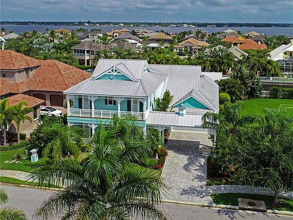 BACKUPS REQUESTED. Welcome home to the enviable gated boating community - Inlets at Harbour Walk. Key West inspired, beautifully and thoughtfully designed, featuring 5 bedrooms, 4.5 baths plus an office, second story bonus room and an additional den, playroom or bedroom, you will appreciate having room for family and friends. From the moment you step through the door, you will notice the light filled interior that excludes character with architectural details, hand scraped Hickory floors, coffered ceilings, wainscoting and bead board. The open kitchen is anchored with the oversized island, pantry, and built in bench for ample seating all overlooking the gathering area and allows open living space transitions from indoor to outdoor enjoyment. The master bedroom includes French doors offering easy access to the pool area, walk in closets and a dual shower in the luxurious spa like master bathroom. Lushly landscaped, summer kitchen, pool bath and shower all designed to take advantage of outdoor living space. Enjoy lounging by the pool, relaxing in the spa or hang a hammock in the cabana. . Boating enthusiasts delight with private dock, 170 feet on the water providing room for your boats just outside your door. Adjacent lot is the perfect space for yard games, future building or divide the property and sell the lot. Community features nature walking trails, tennis court, kayak launch and playground. Conveniently located near 1-75, hubs of restaurants, shopping, airports and world famous beaches. Stop looking - you found your home without sacrificing your lifestyle!