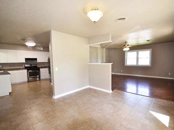 Charming, updated 3 bedroom - 2 bathroom home centrally located within walking distance to school, grocery store, and restaurants! Brand NEW laminated wood, tile, and carpet floors. Remodeled bathrooms with beautifully tiled master bathroom shower. Stainless steel appliances, gas stove, and large refrigerator in kitchen! Workshop/storage room accessible off carport. Large fenced backyard with mature trees!