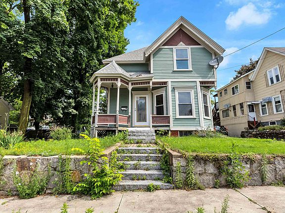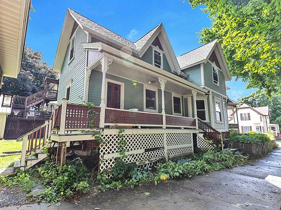 This charming Queen Anne Victorian is waiting for your finishing touches! The 2 car garage was recently renovated with a new roof, siding, door and windows for natural light. The home updates include a newer roof, heating system, on demand water heater and Hardie Board Siding on the exterior. The custom front door opens to the foyer that flows to the Living room, which opens to the Dining room. The Kitchen has a built-in gas cooktop and working pantry with prep sink and double ovens. There is a first floor Half bath which is unfinished. There is a spacious first floor laundry room off the back hall entry. The second floor features two large bedrooms and a large room with built in bookcases that could be a spacious primary bedroom. The second floor has an unfinished full bath with tub and shower. Bring your imagination and building skills to make this gem shine! Being sold "AS IS".