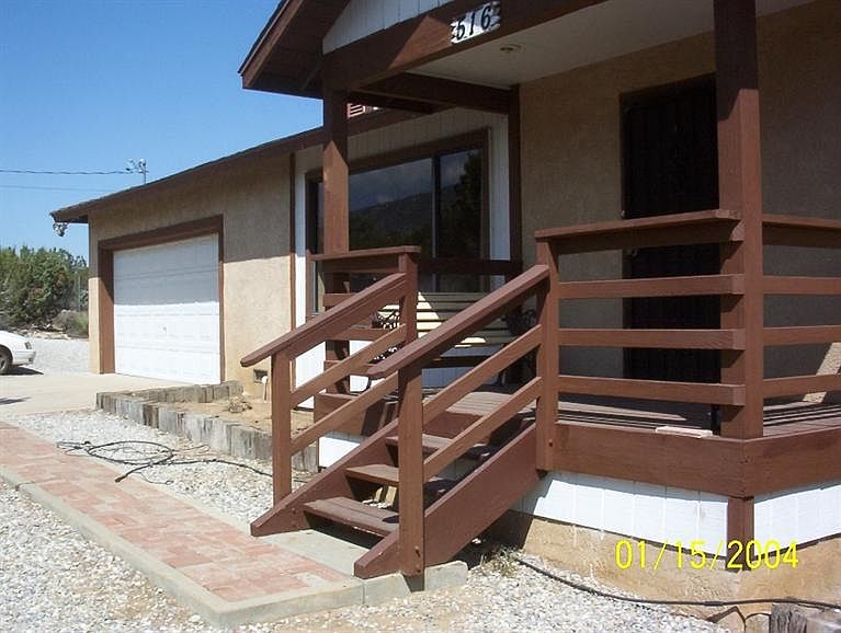 Excellent south Pinon Hills location just 1/4 mile from paved road. Spacious deck overlooks Victor Valley with beautiful view of mountains from the living room. Gently used home with wood stove, forced air and heating, fenced area and drywalled double-car garage.