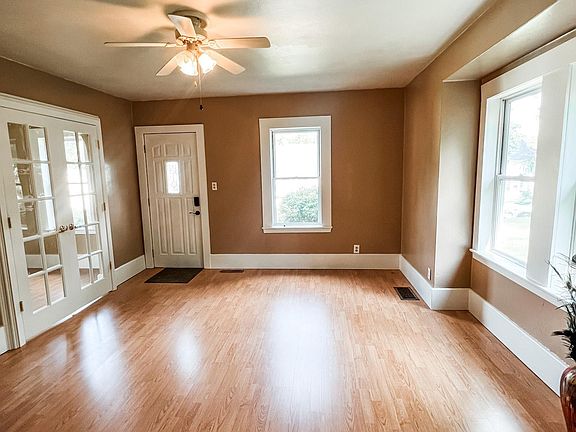 Discover this charming ranch-style home featuring 1 bedroom and 1 bathroom, ideally situated on a corner lot in Forest City. The spacious living room is illuminated by ample natural light from numerous windows. Adorned with elegant French doors, an adjoining room offers versatility as a potential second bedroom, hobby area, or tranquil reading space. The sizable main bedroom offers generous closet space, while the informal dining area seamlessly connects to the kitchen, complete with a generously sized pantry for added storage convenience. A substantial attached two-stall garage provides direct access to a large basement offering abundant storage solutions. Don't miss the opportunity to explore this inviting property – contact your Realtor today to schedule a viewing!