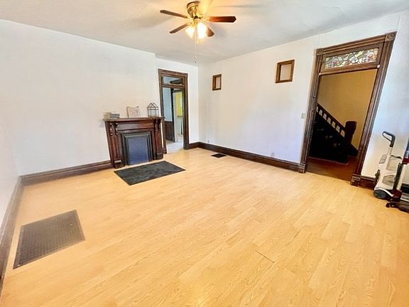 From the covered front porch, welcome guests in the foyer showcasing wood steps, transom windows & original woodwork. Large LR is to the left and offers high ceilings, laminate floor & tons of light. DR sits at the back of house & offers built-ins, gorgeous woodwork and views of fenced yard. KIT is accessed from DR or foyer. The KIT could be altered and used as a laundry room and additional bathroom - moving KIT to huge DR. 2nd level features three spacious bedrooms showcasing the same transom windows and original woodwork. The rooms could easily be divided into additional ones, if needed. Full bath w/claw foot tub rounds out this upper level. The basement is currently used for mechanics of the home and the laundry facilities. It is partial basement and contains a sump pump. This home sits on a lot that is fenced and offers plenty of off/street parking. A shed is also offered. With proper permits, there appears to be room for the addition of a garage at the back of the home.