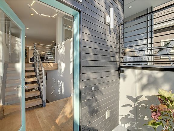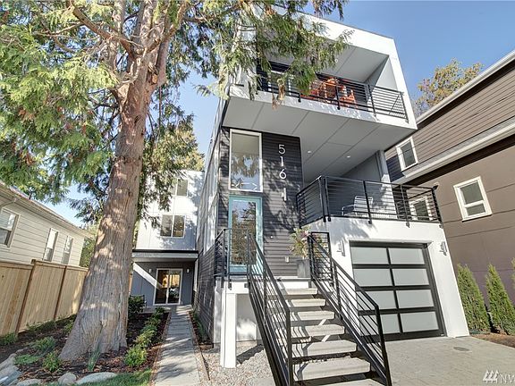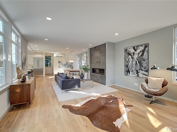 Fantastic new take on the modern on a quiet street. Walk score of 90: Greenwood rocks! Floor plan is open & functional without the boxiness of most moderns. Main floor: features dramatic gourmet kitchen w/ high-end SS appliances, walk-in pantry, beautiful white oak floors, gorgeous fireplace & large covered deck. Top floor: 3BR/2BA including huge master suite. Ground floor is perfect for Guest Suite: separate entry, spacious family room, another bedroom & a full bath. Total of 4 covered decks