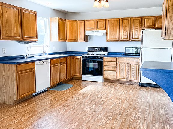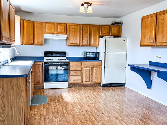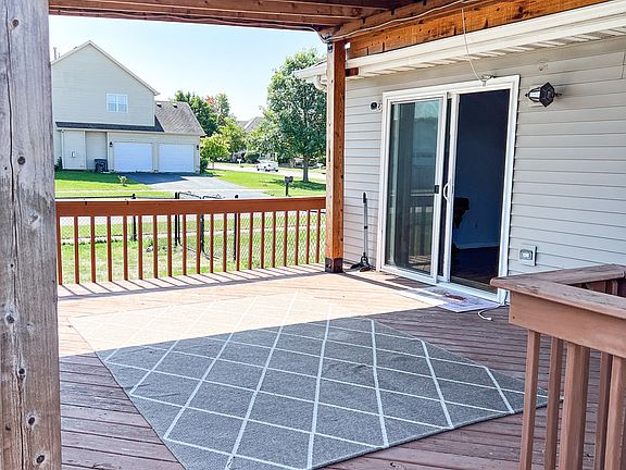 Open floor plan ranch sitting on a corner lot. Welcoming foyer that opens up to the living room with VAULTED ceilings, wood laminate floors, wood burning fireplace with mantle surround. Eat-in kitchen with plenty of cabinets. All appliances stay. Primary bedroom with vaulted ceilings, walk- in closet, and private bathroom. Two additional bedrooms and full hall bathroom on the first floor. First floor laundry includes washer and dryer. Full bath in basement. Two more roughed in bedrooms in the basement. 16X23 wood deck with pergola overlooking the beautiful fenced in yard that backs to McPhiilps Park with playground, basketball court and walking path. GREAT LOCATION.... close to I88, NIU, shopping and many restaurants! Home being sold "AS-IS"
