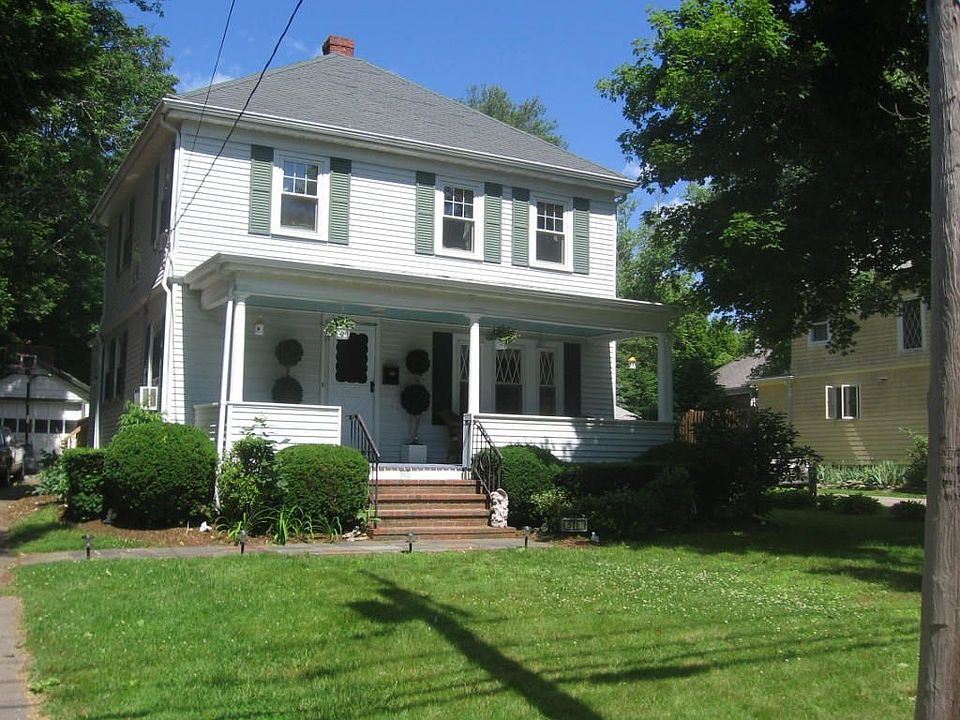 Beautiful home with all the charm and character of yesteryear and still of plenty modern updates. This lovingly cared for colonial with large farmers porch is not to be missed! Step inside the sun filled foyer with turn staircase and custom mudroom area for organizing everyone in your household. More first floor features include; tall ceilings, a full bathroom with shower, a breakfast bar in the kitchen area, a pantry area, separate dining room with built-in cabinet, a bright and sunny upholstered window seat with storage underneath, and pocket doors that open to the family room. Upstairs you will find 3 bedrooms, a 2nd recently renovated full bath with subway tile, a bonus walk-in closet in the hallway which could potentially be turned into a laundry space or office, and a large walk up attic. Outside there is a deck in the back and a fenced in yard making outdoor entertaining a breeze. There is also a 1 car garage and a full basement. Many area amenities close by!