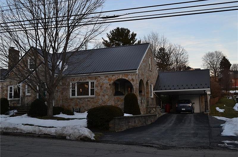 IRRESISTIBLE 4 BEDROOM/2 BATH STONE CAPE COD WITH FENCED YARD AND DETACHED GARAGE + CARPORT. SPACIOUS LIVING ROOM WITH GORGEOUS STONE, WOOD BURNING FIRE PLACE AND HARD WOOD FLOORS. TWO, 1ST FLOOR BEDROOMS AND A FULL BATH. TWO BEDROOMS UPSTAIRS WITH LARGE WALK IN CLOSET, PLENTY OF STORAGE IN THE EAVES AND A 3/4 BATH. COVERED PATIO OFF KITCHEN IS PERFECT FOR GRILLING, OR RELAX OUTSIDE ON THE REAR DECK. OTHER FEATURES INCLUDE: NEWER METAL ROOF (2011), UPDATED ELECTRIC (200A), BEAUTIFUL WOOD BLINDS, FORMAL DINING ROOM AND EAT IN KITCHEN.