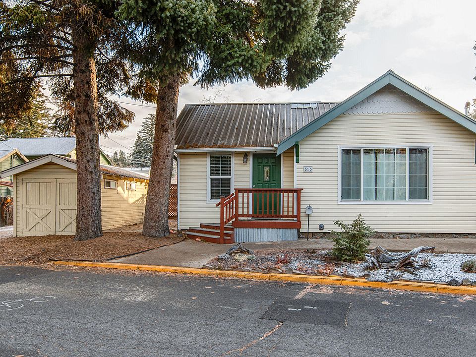 Darling Bungalow located 1 block off the Deschutes River and 2 blocks from Drake Park Enjoy the close proximity of Bends downtown, shopping and restaurants Single car detached garage was being used as an office but can be converted back to a garage or shop. Home has unfinished basement not included in sq ft. Beautiful mature Pine trees and easy care small yard. Perfect for that second home or rental or full time living. New interior paint and carpets professionally cleaned