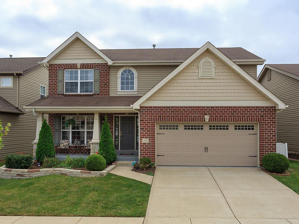 Stunning updated 2 story with 4 bedrooms and 4 bathrooms. Move-in ready condition, popular 2nd flr laundry, expansive luxury master suite, 2,530 sq ft of inviting living space w/ finished LL which includes amazing media room/7.2 wiring, 4th bedroom, 3rd full bath, storage rm. Wonderful convenient location just across the Bridge. St. Charles County at it's finest! Great curb appeal, low-maintenance vinyl siding, enclosed soffits/fascia, stylist brick/stone accents, covered front porch/stately columns, thermal windows. Beautiful kitchen, 42" white cabinets, solid surface counters, stainless appliances, breakfast bar, under mount sink, stone tile backslash, Fantastic natural light, fresh paint, hand-scrapped mahogany wood entry, gas fireplace, neutral carpet, ceramic tile floor. Mstr suite, 2 closets, garden tub, marble shower, double vanity. Private backyard for family bbq's or just enjoying the sunset. Don,t miss out on this gem. Call TODAY for your early showing.