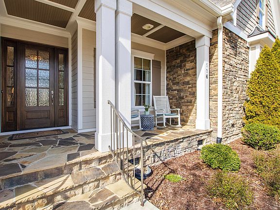 Attention to detail abounds upon entry into this custom-built home crafted by Arthur Rutenberg. Located next to the American Tobacco Trail and less than 4 miles from the new Apple campus, Weycroft Reserve offers a perfect mix of tranquility while being within reach of it all. Elegant millwork and site-finished hardwood floors flow throughout this open floor plan offering today's demands with a lower-level office, a lower-level primary owner's suite with elegant wool carpeting, and a chef's kitchen with a hidden pantry. Three additional bedrooms and a bonus room are on the upper level with walk-in storage and an additional unfinished space that is wired and ready to be finished adding even more opportunity for additional flex space or a second home office if needed. The beauty of nature is abundant as viewed from the spacious screened porch and stone patio with custom-built flagstone wall surround with ambient lighting. Located behind the property is the Army Corps of Engineer buffer followed by Old Chatham Golf Club providing privacy and a feeling of seclusion. This home will not disappoint.