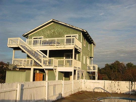 A Handi-man Special, with the potential to completely renovate, update and customize to one's liking. Four Bedrooms, Two Baths, and a Private Pool gets one started. From the Top Level Decking on the West, there are strikingly wonderful views of the beautifully landscaped adjacent Golf Course Community of The Currituck Club. From the East Top Level Decking, there are awesome Ocean Views, over Land available for future development. With driveway access to Ocean Trail ( NC Rt 12 ), you are conveniently located to Retail Shops, Grocery Stores, Movie Theater, Putt Putt Golf, Pro Golf, Kayak Rentals, etc, all within a 10 minute drive. Beach Access is approximately 1440'. A Residential NC State Licensed General Building Contractor can provide insightful recommendations. ***This is a Fannie Mae HomePath property.***