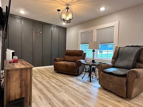 This renovated ranch home boasts anmazing amenities and upgrades, including new Pella windows, a new roof, and stylish vinyl siding. The dream kitchen features top-notch stainless steel appliances, wood butcher block counters, and a custom quartz island. The master en-suite offers a spacious walk-in tile shower concealed by a charming barn door. With a walk-out partial basement, one-car attached carport with storage, and a large lot with mature trees, this home provides ample space for indoor and outdoor living. Don't miss the opportunity to see this charming property in the heart of town!