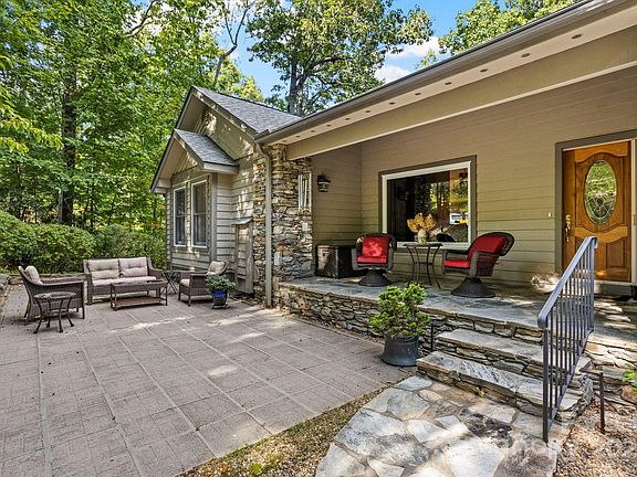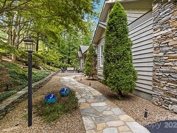 Stunning home in highly sought after Kenmure-a gated golf course community. From the moment you arrive, you'll be captivated by the prime location, level driveway and flagstone walkway that leads to a charming outdoor oasis/patio and covered front porch-perfectly positioned to enjoy the tranquil cascading water feature and private natural surroundings. Step inside to a spacious open concept main level living featuring vaulted beam ceilings and hardwood floors. The great room boasts a dramatic floor to ceiling stacked stone fireplace and abundance of windows/glass doors that flood the space with natural light. Entertain in the formal dining room with a picturesque view of the waterfall or gather in the gourmet kitchen with granite countertops, an island with seating/breakfast bar, custom cabinetry, stainless steel appliances and a built-in desk. The primary suite is a true retreat, complete with high ceilings, walk-in closet, spa-like bath with garden tub, walk-in shower and dual pedestal sinks. A cozy sunroom with wall of windows is not included in the heated SQFT. A well appointed guest bedroom and full bath with double vanity and walk-in shower, add'l bedroom/den along with a laundry room with cabinetry, complete the main level. Downstairs the finished lower level offers ultimate flexibility with a family room, office/flex area, studio with ensuite bath (would make a great guest suite), wet bar area and walk-in closet/storage space. Expansive outdoor living is at your fingertips with a sunroom, open deck with retractable awning, lower level covered deck and screened porch, covered front porch and outdoor patio. Great opportunity to enjoy mountain living at its finest!
