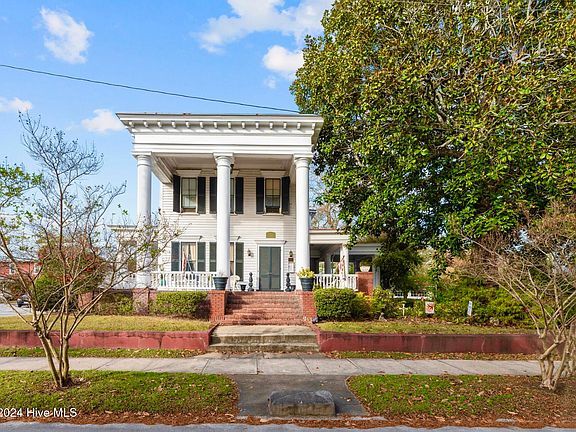 RARE opportunity to own one of Downtown New Bern's most exceptional historic homes! Built in 1882, the Charles T. Watson house is one of the few surviving residences that belonged to wealthy merchants of the late 1800's. Embodying the elegance of 19th century Italian Renaissance style architecture, the house was built for prominent resident, Charles Thomas Watson, and is extra special in that it has remained in the same family since it was constructed. Featuring one of Downtown's very best full-width porches with ornamental pillars and moldings, you will be wowed by the exterior's intricate brackets, distinctive corbels and the overall majestic facade of this entire home. Step inside to find some of the most lavish finishes of the period including soaring ceilings, exquisite moldings, grand rooms for entertaining or relaxing with magnificent, hand painted ceiling medallions and an incredible stair with octagonal panelled and turned newel, turned balusters, a heavy molded handrail, and fine sawn foliate mahogany step-end brackets. As if this is not enough, buyers will be delighted by the first floor bedroom and bathroom, three bedrooms and two bathrooms on the second floor, enclosed porch, expansive 1/4+ acre double lot, circle driveway with gorgeous portico AND a two car garage! The property is being sold ''as is,'' offering a a beautiful canvas to create a stunning and exquisite Downtown showcase home.