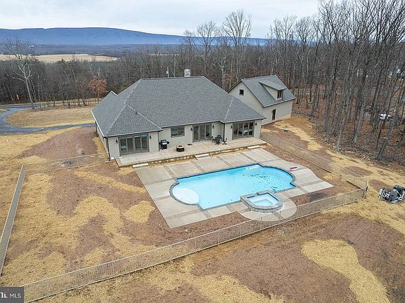 Certified Distinctive Property! An exquisite living experience awaits in this custom newly built luxury home. Uncompromising quality shows throughout with meticulous attention to every detail. The flowing layout, soaring ceilings and large Andersen casement windows flood the house with natural light. The upscale kitchen is a chef's dream boasting quartz counter tops, a 6-burner gas range and 3 ovens. All GE Cafe stainless steel appliances complement this stunning kitchen . An additional built-in icemaker with pellet ice is perfect for entertaining. An over-sized ghost pantry completes this exceptionally built kitchen. Throughout the house you will find beautiful high end custom saw cut white oak flooring which adds to the appeal and structural integrity of the home. Attractive exposed custom cut wood beams add a warm and welcoming vibe to the spacious living area. The luxurious stone, wood burning fireplace completes the elegance. Enjoy relaxing or entertaining in the large, heated, salt water in-ground gunite pool and built in spa. The oversized concrete decking offers plenty of room for outdoor entertaining while sitting around the pool. A heated built in hot tub offers year round enjoyment. Breathtaking views will captivate you while you enjoy the peaceful and secluded 9 acre wooded setting. A detached oversized 3 car garage with a second level unfinished 1200 sq ft bonus room with electricity completes this spectacular property that is unparalleled to most other homes in the area. Too many upgrades to list. Make an appointment to see this beautiful, single level living, luxury home. Please call agent to view property, no drive-by. Home is currently occupied by seller.