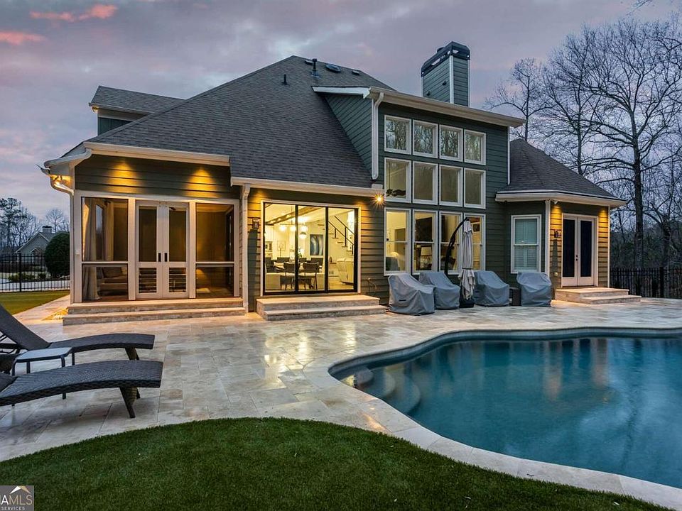 Luxury...Lifestyle...and Location. This meticulously maintained and gorgeously designed estate home is as functional as it is beautiful. As you enter the home, you feel as though you have just stepped into a resort. Modern elegance and quality craftsmanship greet the eye from every angle. From the grand two-story foyer, you have a sightline through the entirety of the home all the way to the backyard oasis. The newly-finished travertine patio, gunite saltwater pool, and waterfall are absolutely stunning! With this property you are not only buying a magnificent home, but you are getting a lifestyle. As you come back inside from the backyard resort, you feel as though the exterior and interior are one because of the floor to ceiling windows in the spacious living room. It is simultaneously grand and comfortable with its custom built in cabinetry and inviting fireplace. The spacious kitchen is appointed with high-end Viking appliances and quartz countertops. In addition, there is a separate butler's pantry, perfect for entertaining and providing even more storage. The large master ensuite is conveniently located on the main level as well. With its own access to the backyard oasis and a second fireplace, you may never want to leave. The grand staircase leads you up to three more large bedrooms, two newly remodeled baths, and a generously sized office space. The basement completes the over 6000 sq ft of living space. Here you will find a complete in-law suite, including another bedroom, bathroom, kitchenette, and living space. This spectacular home is a 'must see.' Schedule your showing today!