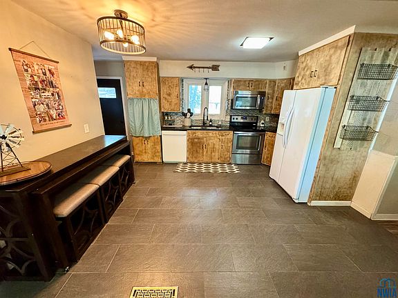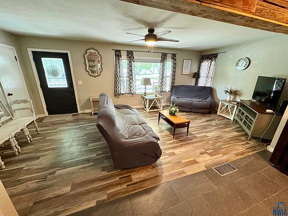 Enjoy small-town charm in this ranch home in the heart of Moville! Located just steps from the school, this 2 bedroom, 2 bath home offers a spacious and inviting layout. The open-concept living room flows seamlessly into the eat-in kitchen featuring quartz counters and all appliances included. Both bedrooms on the main floor include spacious closets and additional built-in shelving. The partially finished basement provides extra space and potential, just waiting for your personal touch. It could be used as an additional living room and den or used as a large primary suite with a walk-in closet and ¾ bathroom. Outside, you’ll find a large, private fenced-in yard with a patio perfect for relaxing evenings. Whether you're looking to downsize, buy your first home, or settle into a small community, this property has all the essentials in a location you'll love! Property is being sold as-is.