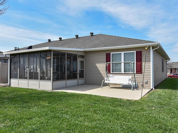 Welcome to this fantastic 3-bedroom, 2-bath condo in the desirable Haubstadt area. Spacious living room features a vaulted ceiling and beautiful hardwood floors, seamlessly flowing into the kitchen and dining area. The kitchen offers plenty of cabinet storage and countertop space, along with a large breakfast bar that’s perfect for casual meals or gathering with friends. Just off the kitchen, you’ll find a convenient pantry and a laundry room located just steps from the attached 2-car garage. The layout includes two bedrooms at the front of the home, separated by a full hall bath—perfect for guests or an office. The primary bedroom features its own full bath with a spacious vanity, tile flooring, and a walk-in shower for easy access. One of the highlights of this condo is the heated and cooled all-seasons room, providing extra living space year-round. It’s the perfect spot to relax with a book, enjoy a cup of coffee, or take in the peaceful views of the open farmland behind the home. With no neighbors directly behind you, the setting feels private and serene. The driveway offers plenty of parking, and the location is within walking distance of grocery stores, banks, and retail shopping, with great restaurants nearby. This low-maintenance home includes an HOA fee of $120 per month, plus an additional $23.39 per month for the reserve fund, totaling $143.39. This covers exterior maintenance, snow removal, lawn care, and exterior insurance, making life a little easier. Well-maintained, spacious, and perfectly situated, this condo offers a lifestyle of comfort and convenience in Haubstadt.
