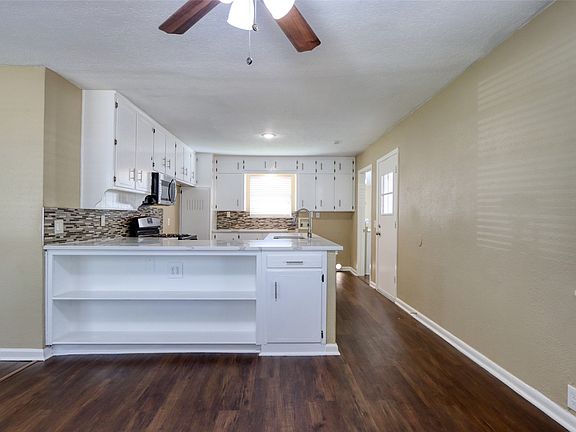 This home, with a 854 square foot garage, has been transformed through a complete renovation! 3 bedrooms, 2 bathrooms, a carport, a built-in desk, and a large backyard! New roof, new AC unit, foundation work with with a significant amount of the wood substructure replaced, and a French drain were all completed in 2025. The main sewer line was replaced in 2024. The kitchen was renovated in 2022 with quartz kitchen counter tops, mosaic back splash, large stainless sink, and stainless steel appliances. In 2022, the following were installed: bathroom fixtures, bathroom faucets, luxury plank flooring, light fixtures, doorknobs, and 2 inch faux wood window blinds. The 854 square foot garage is on solid concrete, has an automatic garage door opener, it's own electrical panel, and has a nice shop area. The expansive yard also has a covered area, an operational storm shelter, and a newer fence.