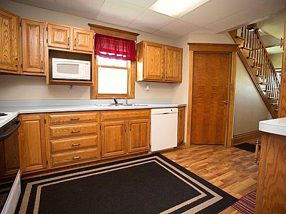 Easy-living in this well kept 2 story home. 2 bedrooms with a bonus/rec room in the basement. Large dining room and kitchen with ample cupboard/storage space + breakfast bar. Main floor laundry/mud room with sink. Washer/Dryer, Stove, Fridge, Dishwasher included with sale. Call today to schedule a tour.