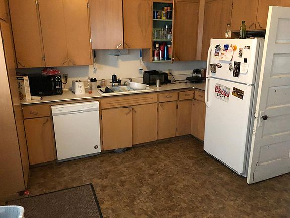 Duplex with 6 bedrooms, two bath house, two kitchens, close to downtown, across the street from free bus stop. Plenty of off-street parking and one car stall garage. Large front porch with huge living room. Vinyl interior windows. Air conditioning, clothes washer & dryer, fridge, range, disposal and dishwasher. Accommodates up to 8 people. 360 day lease. Tenant pays for utilities.