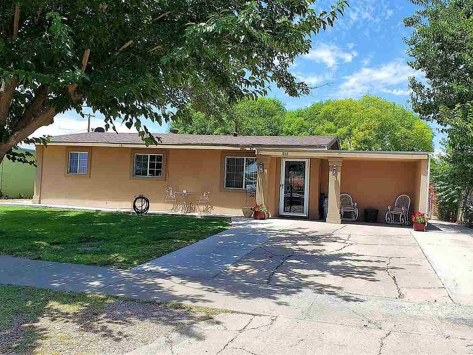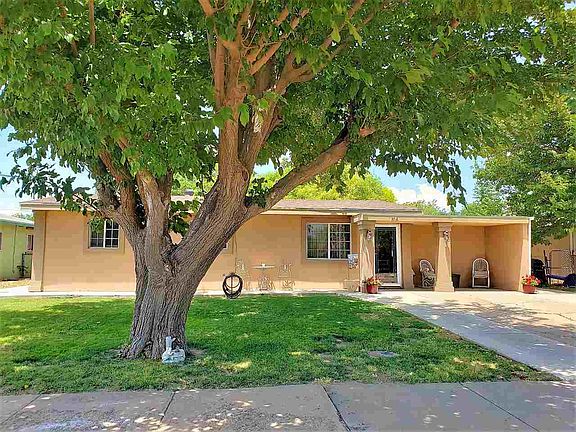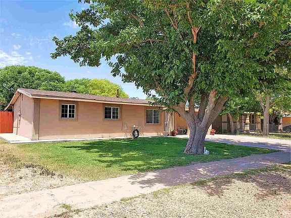 Beautiful Home! Won't last long! at 1,196 sq. ft. home has 3 bedrooms, 1 bath, living room, kitchen/dining room combo with breakfast bar, sliding door to covered patio w/exterior ceiling fans, central heating/cooling, garage was converted to a storage area and pantry, large fenced in back yard with mature trees and landscaping, double gate for trailer or RV, and a storage shed, per owner new roof in 2018, new flooring, and new paint.