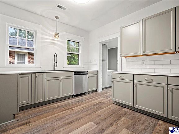 Downtown renovated home on a corner lot. Everything about this home is new except the bones. New roof, plumbing, electrical, HVAC, insulation, flooring, cabinets. lighting, and paint in 2024. Entering the house you'll first notice the beautiful, refinished hardwood floors, and 9ft ceiling in the living and dining rooms. The kitchen has gorgeous new cabinets, LVP flooring, quartz countertops and stainless-steel appliances. The laundry room is large with additional pantry space and cabinetry. Both bedrooms are oversized with refinished hardwood floors. The full bathroom has a tiled tub shower combo, and a beautiful vanity with quartz countertop. Everyone loves the spacious screened-in porch that is perfect for relaxing or entertaining. This property is in walking distance to pickle ball courts, tennis courts, a park, restaurants and more. Come take a look at this "like new" home tucked in a quiet street near downtown Florence.