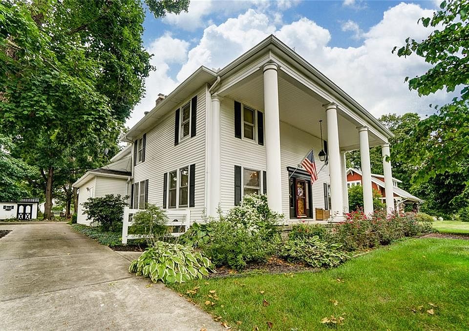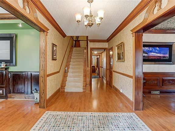 Impressive home sitting on over 3/4 acre w many original features preserved! Grand pillared front porch leads into gorgeous home w ornate woodwork & wood floors throughout dining & formal living rms w spiral staircase leading to temperature controlled wine cellar. Family rm features built-in sunken seating area & bar! Gourmet kitchen w cherry cabinets, desk area, stainless steel appliances, breakfast area overlooking greenhouse, built-in shelves + laundry rm & lg back entry. Study w beautiful built-in bookshelves, ornate f/p & tons of natural light. Master suite features hand crafted oak bed, bath w dual sinks, w/p tub, shower, loft area & loads of closet space. 4 more bedrooms, full bath, extra study + staircase to bonus rm! Basement w loads of storage & nice work area. Backyard you will find a nice patio area & fire pit, storage shed, & plenty of room to play & relax! Updates include: New roof, shed door, main A/C & split unit for master, landscaping, paint + more! One of a Kind!