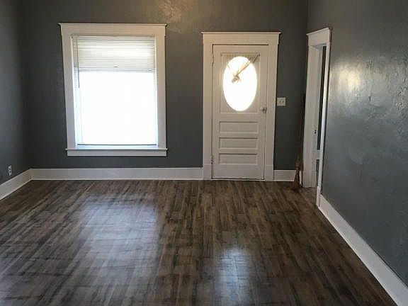 Newly remodeled interior with new paint, new laminate flooring, trim, gas wall heaters, lighting. Large living room and kitchen. Back bedroom has half bath. This home is in a nice quiet neighborhood. A large detached garage in rear of home with concrete floor. Fenced backyard. Window A/C. Utility room at rear of home room for full size washer/dryer. Clean and ready for move in. $450 OFF FIRST MONTHS RENT Sec 8 Accepted Call for texted link to your phone or call and give email address apply online. Total move in cost $850 deposit plus $400 first months rent for total of $1250. Complete application must include copy of ID ( drivers license ) and current pay stub.
