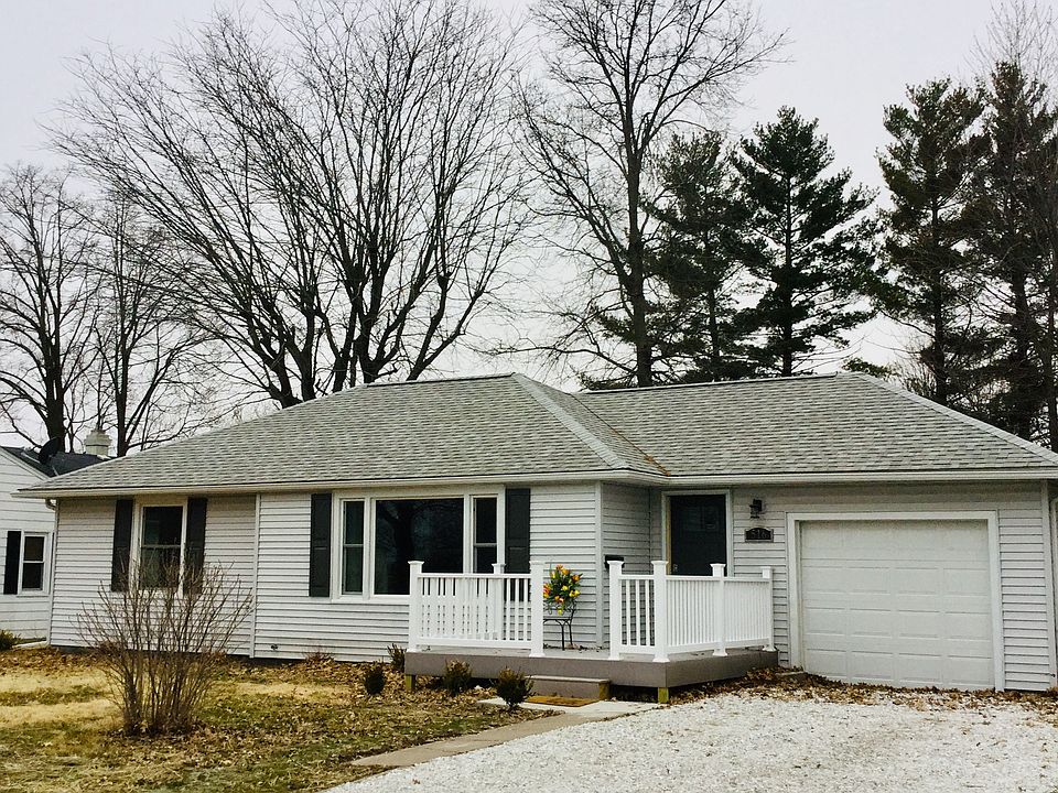 Complete renovation! Open floor plan! New fully applianced kitchen with island, new bathroom, flooring, interior and exterior doors, trim, gas fireplace, rear deck, front porch, lighting, wiring and plumbing. Attached garage with an opener on a large, flat lot with beautiful trees and new landscaping in a quiet neighborhood.