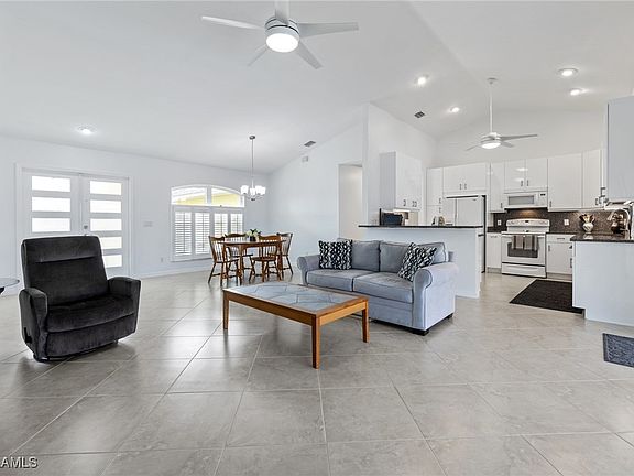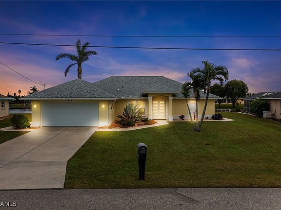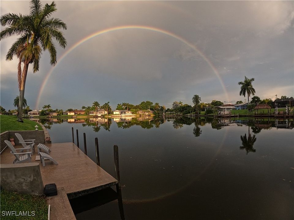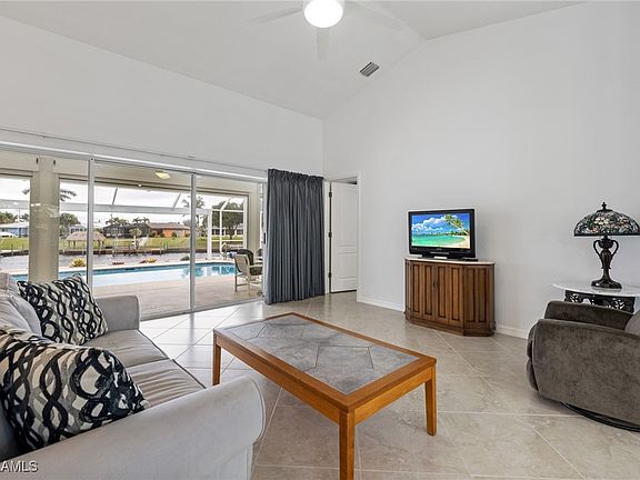 If you've ever dreamed of living in Cape Coral, you understand the allure of being close to the water with breathtaking views. Your future home embodies that dream and so much more! Located in a peaceful, centrally situated neighborhood, you'll be just moments away from shopping, dining, and all major bridges. The stunning residence backs onto a saltwater basin on the San Carlos canal offering access to the river. Step inside this spacious 3-bdrm home (including 2 master suites) with 3 full baths. The highlight is the expansive new oversized lanai, featuring a picture window and a large solar-heated pool, ideal for entertaining or simply enjoying the tranquil surroundings. Picture yourself watching dolphins and manatees swim by from your own lanai! The interior is designed for comfort and style, with large porcelain tiles throughout and an open kitchen and living area that boasts soaring cathedral ceilings. The kitchen and bathrooms feature elegant quartz countertops, and there's plenty of storage with ample closet space, cabinets and a garage. Step outside to find a beautifully designed sidewalk surrounded by easy-care succulents and native plants. The sidewalk leads directly to your private dock-perfect for quick water access! Rest easy with worry-free maintenance, including a new roof, hot water heater, resurfaced pool, and a new pool pump, all professionally painted inside & out. Your home is equipped with hurricane windows, electric shutters, and secure doors. Plus a recent wind mitigation report & four point inspection means your investment is well protected. AND THE VIEW? It's nothing short of SPECTACULAR!! Don't miss out on this chance to embrace the ultimate Florida lifestyle. Make this dream home yours! Flood insurance is not required but seller's have a policy that is transferable for extra peace of mind.