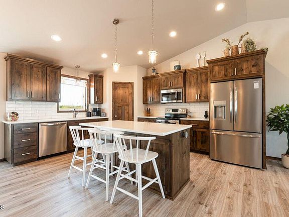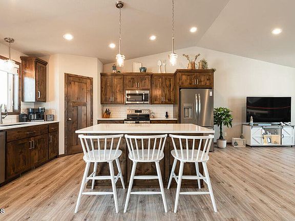This stunning home, built in 2022 and located in NW Bismarck's Boulder Ridge Development, is one you don't want to miss! As you enter, you'll be greeted by vaulted ceilings and an abundance of natural light. The open-concept design connects the kitchen to the dining area and living room, creating an ideal space for entertaining. The patio doors off the dining room lead to a maintenance-free deck. The main floor boasts 3 bedrooms including a primary suite featuring a spacious closet and a ¾ bath. The home also has the convenience of a main floor laundry. The fully finished basement includes 2 additional bedrooms, a large family room, and a full bath. The 3-car attached garage is insulated and equipped with a floor drain and hot/cold water. The yard includes a sprinkler system and has been recently hydroseeded. Don't miss this opportunity to move into a nearly new-construction home without the hassle of building from scratch and/or landscaping! Call your favorite realtor to see it today!