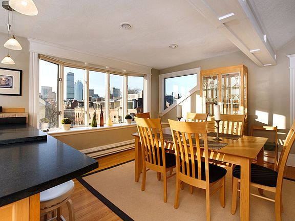 Sun drenched South End penthouse duplex with sweeping views of Back Bay and Downtown Boston! Rare corner unit features large windows on three exposures and 2 spacious bedrooms plus home office or nursery. Open concept and expansive upper level living area with vaulted ceilings, exposed brick, beams, skylight and walls of windows from which to enjoy spectacular city views. Windowed kitchen with soapstone counters, breakfast bar, dining area and great flow to large living room ideal for entertaining. Ideally located close to transportation, Toro, Stella, Orinoco and other fabulous neighborhood restaurants, shops, parks and galleries. 516 Shawmut is a must see!
