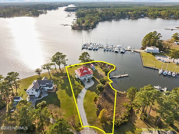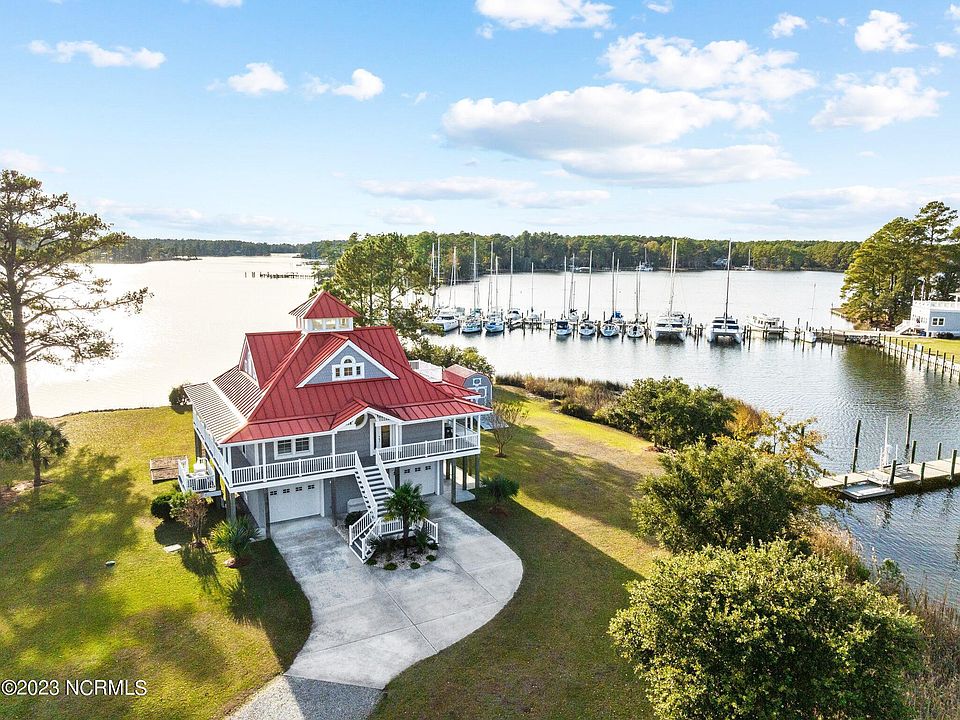 3 bed, 3 bath custom home designed by Mike McCloud located in Silver Acres.. moments from Village of Oriental - the 'Sailing Capitol of the Carolinas'. Concrete dock in-place w two 18ft x 40ft slips, Swinger PWC lift w power&water. Peninsula homesite is wooded toward back sides with oak tree canopies for a layer of privacy opening up towards the water - spanning 400 ft of waterfrontage on Broad and Coffee Creeks which converge w Brown, Giddeon & Tar Creeks. Home boasts superior features & craftsmanship: Wraparound porches w Trex decking, Anderson doors & windows, Standing Seam metal roof, numerous custom built-ins. Elevator access from garage (ground) to the 1st level. Open concept floorplan at 2,430 sqft w gas log fireplace, interior & exterior speakers, oak wood flooring w cherry inlay. Sunroom enjoys SW waterviews w expansive floor-to-ceilings windows allowing an abundance of natural light. Kitchen boasts Stainless Steel applicance pkg, Gas cooktop, RO sink spigot, Convection & electric oven, tilt trays, Granite countertops. Ambient lighting accent in cabinetry and kitchen island, numerous outlets for cooking/entertaining, bar seating.