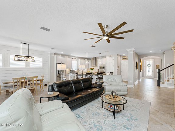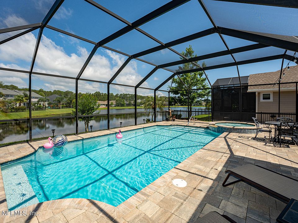 JUST IN TIME FOR SUMMER FUN AND NO YEAR LONG WAIT TO BUILD A POOL. THIS ADORABLE POOL HOME WITH SPA SITS ON A TRANQUIL LAKE WITH A LARGE SCREENED IN LANAI AND SUMMER KITCHEN. BRIGHT AND OPEN ENTERTAINING CAPABILITY WHETHER INSIDE OR OUT. FLEX ROOM OFF THE KITCHEN WITH FRENCH DOORS COULD DOUBLE AS AN OFFICE OR PLAYROOM. 3 BEDROOMS DOWN STAIRS WITH A HUGE 4TH BEDROOM/BONUS ROOM UPSTAIRS WITH FULL BATH. SHIPLAP SIDING, BUILT IN WINE BAR, PLANTAION SHUTTERS, WATER SOFTNER, DROP ZONE, ELECTRIC CAR CHARGER AND EPOXIED GARAGE FLOORS ARE JUST A FEW OF THE EXTRAS. WALKING OR BIKING TO THE A RATED PALM VALLEY ACADEMY SCHOOL AND ALL OF THE GREAT AMENITIES OF NOCATEE AT YOUR DOOR. THIS IS ONE NOT TO MISS!!!