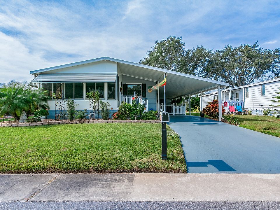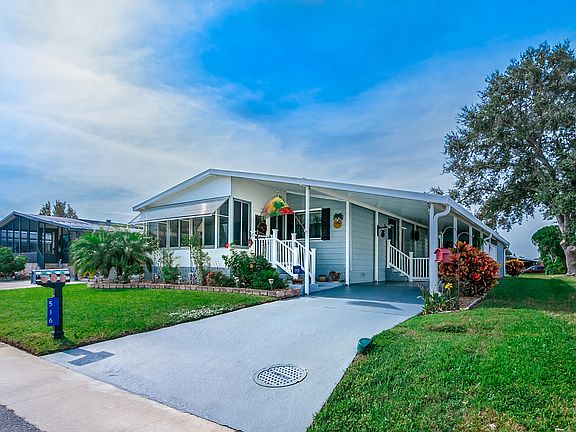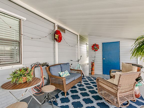 You'll instantly feel at home in this spacious, modern home where every detail was tastefully curated. This is a home that would make Joanna Gaines proud!! From the wood laminate flooring to the shiplap wood accent walls, you'll be thrilled to show off all the updates in your new home. Entering the home, you are welcomed into the beautifully done kitchen with tall white cabinets, stainless steel appliances, gorgeous countertops and an exquisite complementing backsplash. The living area is spacious with room to relax and enjoy time with loved ones. There is even an electric fireplace that sets the ambiance in this meticulously updated home. The master bedroom is your serene retreat and both bedrooms in this home welcome comfort with plush new carpet and room to wind down. Enjoy entertaining in the fresh Florida air with two outdoor living areas. The Florida room is outfitted a/c, and slider windows and outside shutters allowing you to enjoy the space all year long. Everything in this home has been updated and remodeled. From the amazing landscape, beautiful front porch, updated exterior, new a/c, beautiful fixtures, so crown molding and the list goes on. Inviting and move-in-ready, you don't have to do a thing to this residence except for make it yours! Fantastic Hollywood Estates home is perfect for embracing the Florida lifestyle. The 55+ neighborhood boasts incredible amenities such as the community pool, shuffleboard, and there is even on-site storage for your boat or RV! Don't wait! Low HOA fees and a great community, make this a great purchase!! This Joanna Gaines inspired home won't last long!!